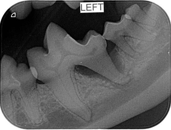 Then your pet is not alone. 80% of pets that we see do need some dental attention. The good news is that a Scale, Polish & Assessment (or SPA) is a routine procedure and we do them every day, so our vets and nurses are really experienced. Part of your pets SPA Procedure will involve dental X-rays which are essential for us to fully assess what is happening in your pet’s mouth. The dental X-rays above belong to Gus, who is a Miniature Schnauzer. Gus came in for a Healthy Pets 4 Life check-up and dental and although his mouth appears normal to the eye, the X-rays revealed disease below the gum line that needed our attention; luckily we caught it on the X-rays. It was after treating Gus that we began to include dental X-rays in our routine dental procedures so we didn’t miss any more sore teeth that needed treating.